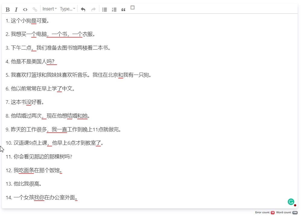 To test if these Chinese grammar checkers work well, first, we need to list a series of Chinese sentences with typical grammar errors. We have already introduced the Top 20 Common Mistakes Chinese Learners Make, and we selected 14 of them to form our test targets. Compared to paragraph errors, sentence grammar errors are much easier to identify and correct. No matter whether you are a beginner, intermediate or advanced learner, you need to deal with sentence errors.