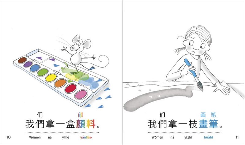 As the Brain Child Award Winner, the sets 1 & 2 of Chinese for Kids are good motivating of first readers for children ages 3-8 who are beginning to learn Chinese. Developed with teachers, the Spot Color Immersion Method combines simple sentences, humor, visual cues, repetition and context in just one line of text per page to help beginners learn vocabulary. Children soon read each page by themselves until they proudly finish their first little book in Chinese, then all 20, an achievement that builds confidence and motivates them to continue learning. Kids learn the correct pronunciation by listening to the online audio by a native speaker.