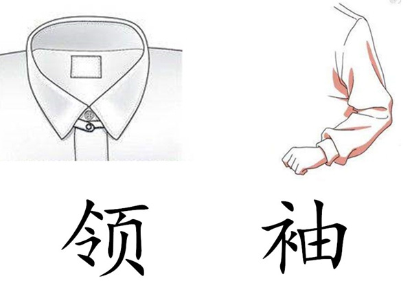 The same logic applies to 领袖(lǐngxiù), which means “leader.” 领(lǐng) is the collar of a jacket; 袖(xiù) are its sleeves. As the collar and sleeves are the most important parts of a jacket, they are used to refer to the leader of a group of people.