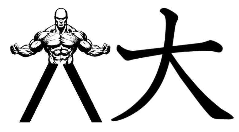 The most popular mnemonic for learning Characters is creating a visual image out of the character. The character for Large/Big 大(dà) can be taken as an example. Imagine a man holding his arms out and telling you “It was this big!!!” while using his arms as a way to demonstrate size.