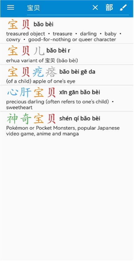 Pleco is a popular Chinese-English dictionary with helpful features like flashcards, tests, word card import/export, and OCR. You can search using pinyin, Chinese characters, or English words. If you’re unsure whether to use 儿(er) or not, simply input the word and let the app check for you.