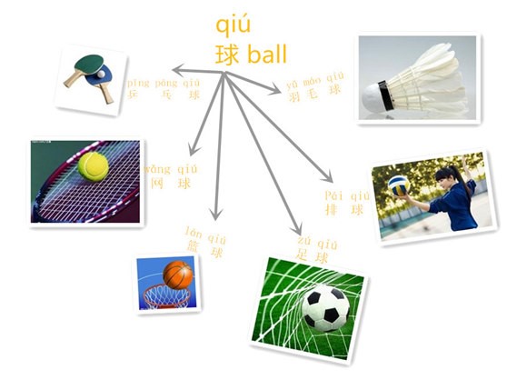 As you can see, the picture above also shows us a net for learning vocabulary. You can start with a topic that interests you such as shopping or playing sports. Write down this main topic in the middle of a big sheet of paper. Add branches from the main topic and use related phrases or words as the titles. This method also works when learning Chinese characters. It`s a fun and easy way to start building your vocabulary of Chinese characters through a continuous and vivid approach.
