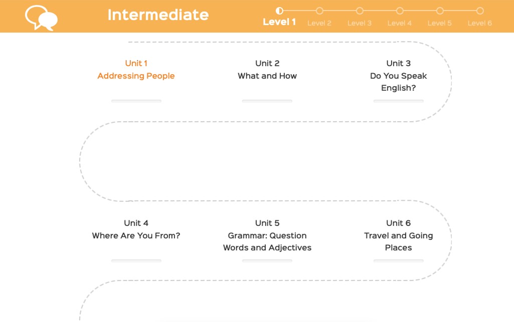 Each Course is broken down into 6 different levels, which is then further broken down into roughly 13 different units.