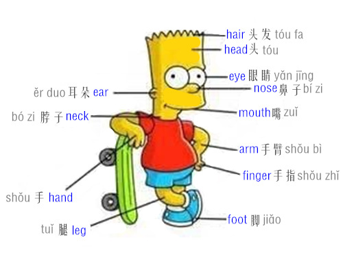 Learn Chinese Vocabulary in an Easy Way – Body part 4 Last updated: September 13, 2015 Dig Mandarin Vocabulary English Chinese(Characters) Chinese(Pinyin) Audio Hair 头发 tóu fɑ Head 头 tóu Eye 眼睛 yǎn jīnɡ Nose 鼻子 bí zi Mouth 嘴 zuǐ Arm 手臂 shǒu bì Finger 手指 shǒu zhǐ Foot 脚 jiǎo Leg 腿 tuǐ Hand 手 shǒu Neck 脖子 bó zi Ear 耳朵 ěr duo Online Chinese Tutors 1:1 online tutoring 100% native professional tutors For all levels Flexible schedule More effective Learn more Dig Mandarin You May Also Like Learn Chinese Vocabulary in an Easy Way – Body part 6 Learn Chinese Vocabulary in an Easy Way – Body part 5 Learn Chinese Vocabulary in an Easy Way – Body part 3 Show 0 Comments Comments (0) Leave a Reply Cancel replyYour email address will not be published. Required fields are marked *Name * Email * Website Comment * Δ
