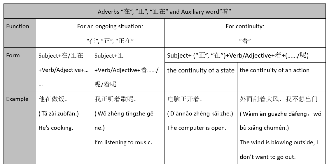 When learning a new language, one of the fundamental aspects to grasp is how tense and continuity are expressed. One of the intriguing distinctions between Chinese and English lies in how they handle the ongoing continuity of actions and states. While English alters verb forms to indicate the ongoing nature of an action, Chinese opts for a different strategy, relying on specific words to convey this concept. In this article, we’ll delve into this fascinating aspect of the Chinese language: the utilization of words like 在 (zài), 正 (zhèng), 正在 (zhèngzài), and 着 (zhe).