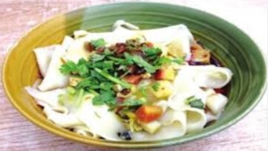 Biang Biang noodles are a type of hand-made noodles popular in China’s Shanxi province. They are thick and long, like a belt, and topped with lots of red hot peppers, making them a great dish for the cold winters in Shanxi. Originally considered a poverty meal in the countryside, these noodles have become popular in trendy restaurants because of their unique name.
