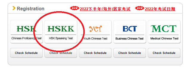Visit the Hanban website and create an account. Log in and select “HSKK (HSK Speaking Tests)” from the Registration menu.