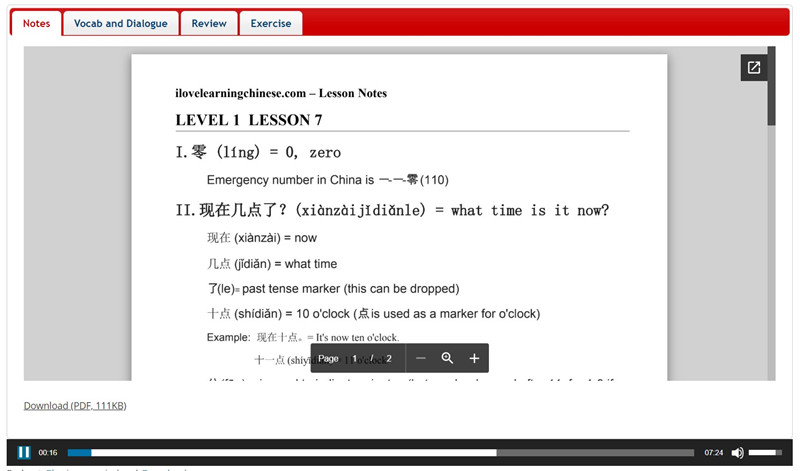 “I Love Learning Chinese” is designed for busy individuals seeking short daily lessons. Their website and iTunes offer several hundred free lessons, divided into six levels, each with about 25 lessons. Similar to Melnyks Chinese, this series is designed for beginners to start from level 1, episode 1, and progress through level 6, episode 25. Review lessons are also available to revisit key points from previous episodes.